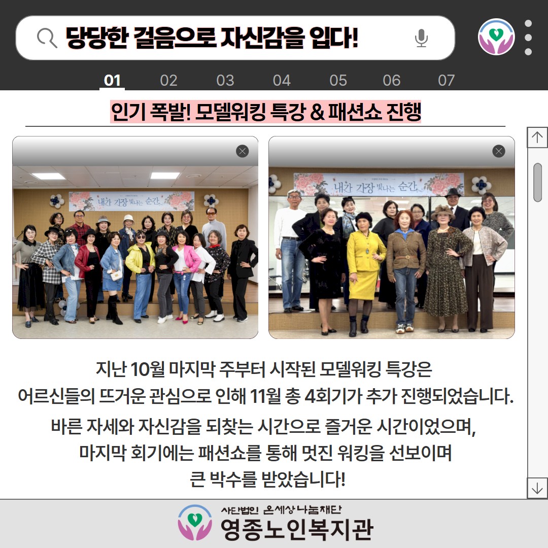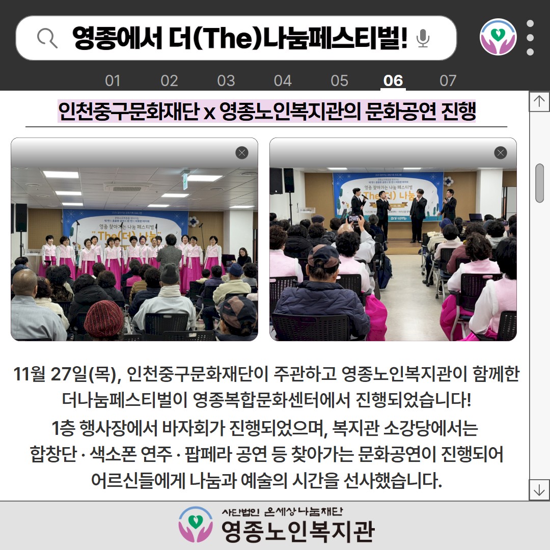 ♬ 띵동 ♬ 영종노인복지관의 11월 소식을 전달드립니다! 페이지 정보 작성자 영종노인복지관 작성일25-12-03 13:58 조회수730 본문 목록 다음글 ♬ 띵동 ♬ 영종노인복지관의 10월 소식을 전달드립니다! 25.11.04