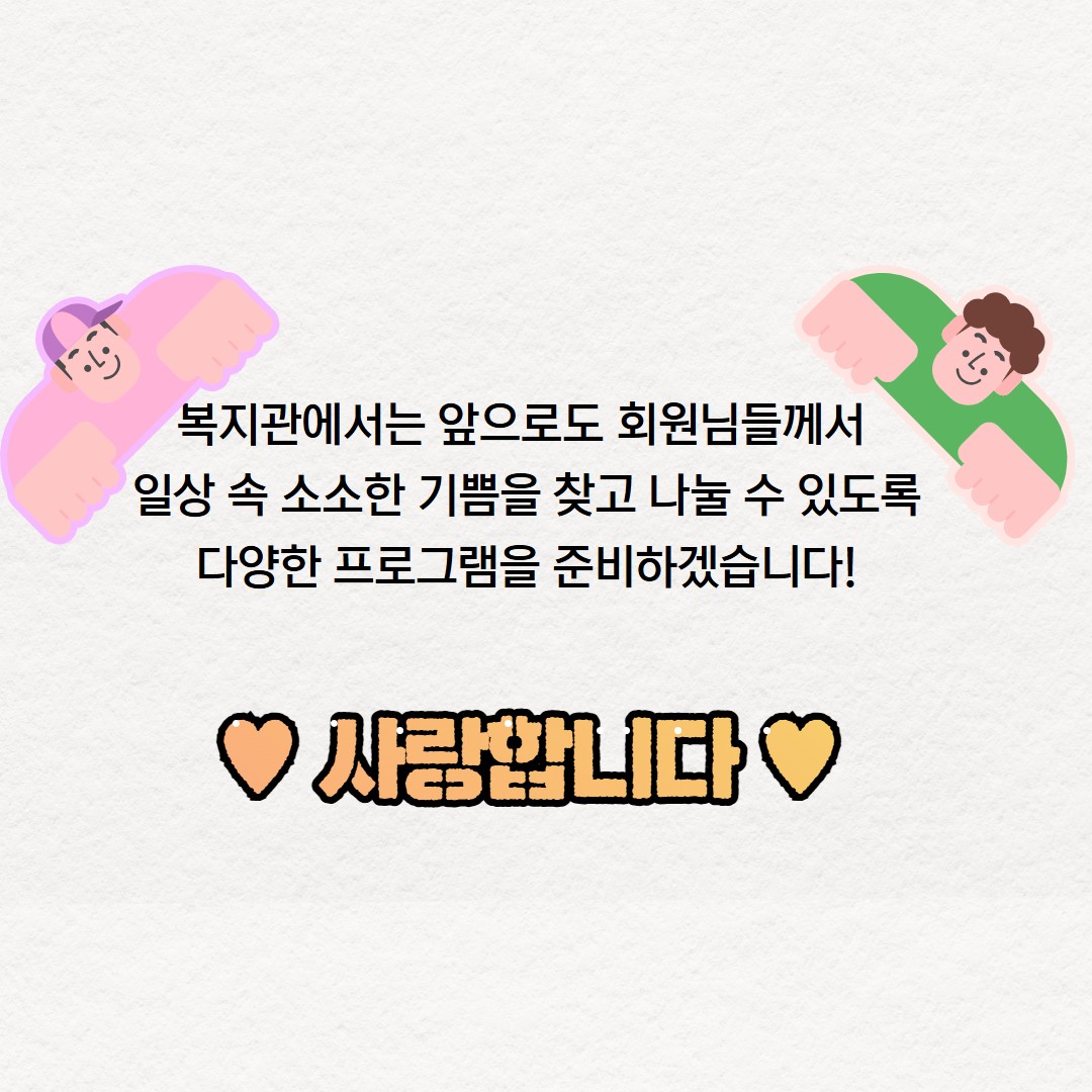 [노년사회화교육사업] 8월 특강 '행복 인문학' 진행 페이지 정보 작성자 영종노인복지관 작성일25-08-21 17:01 조회수100 본문 목록 이전글 영종 어르신들을 위한 새로운 여가공간, 당구장 운영 시작 25.08.22 다음글 [노년사회화교육사업] 7월 특강 '도예교실' 진행 25.08.04