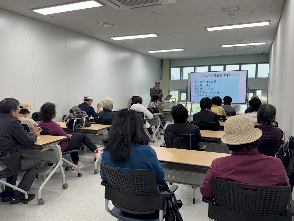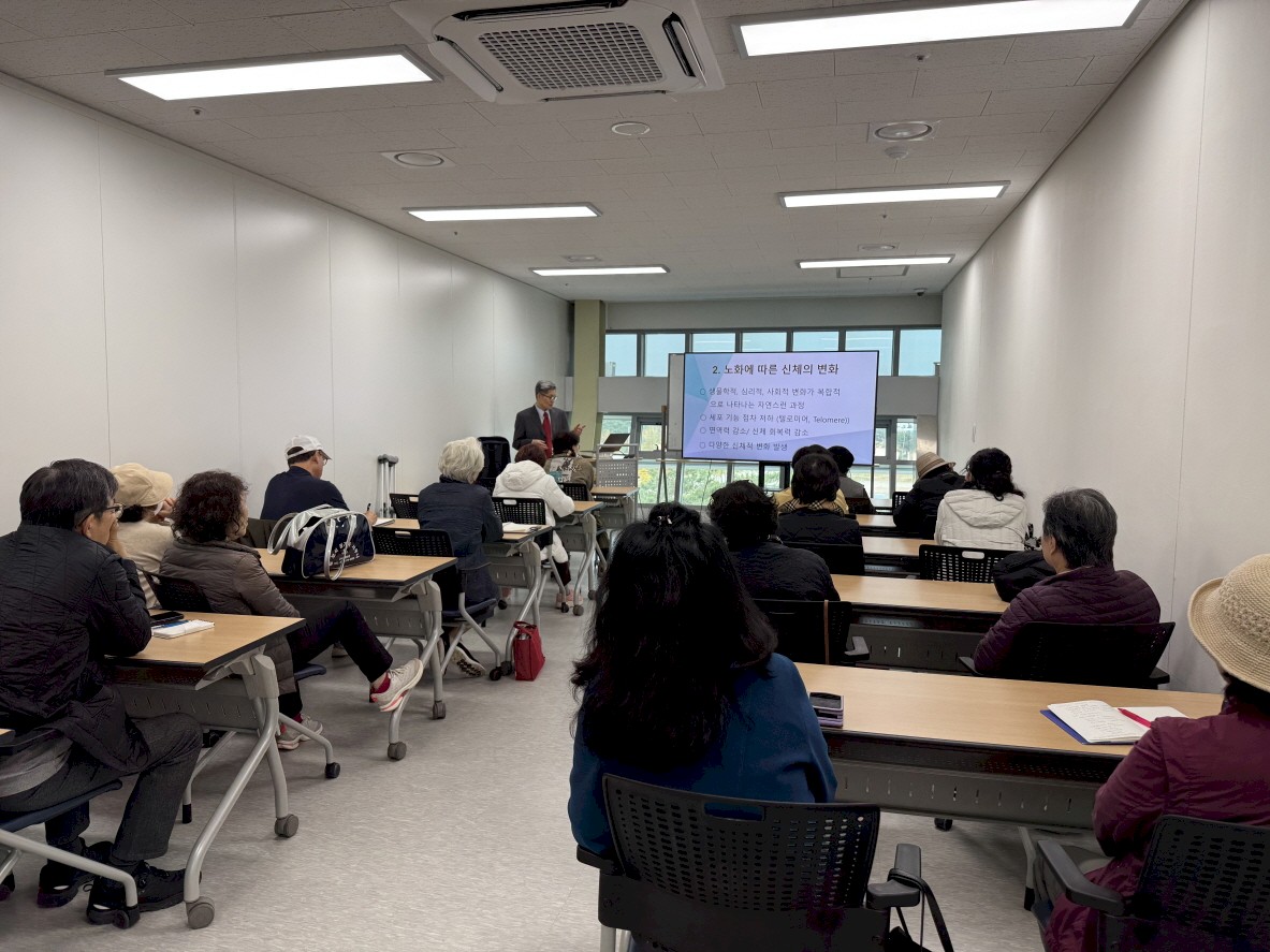 이번 특강에서는 신체적 · 정신적 건강 관리를 비롯하여 노년기 사회적 역할과 건강보험 및 장기요양보험 등