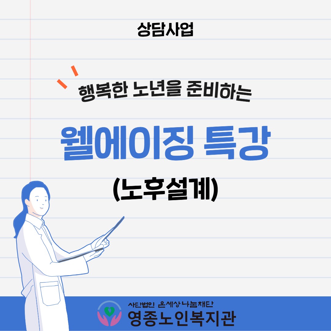 영종노인복지관에서는 10월 상담사업 ‘웰에이징(노후설계)’ 특강을 2회기에 걸쳐 진행했습니다.