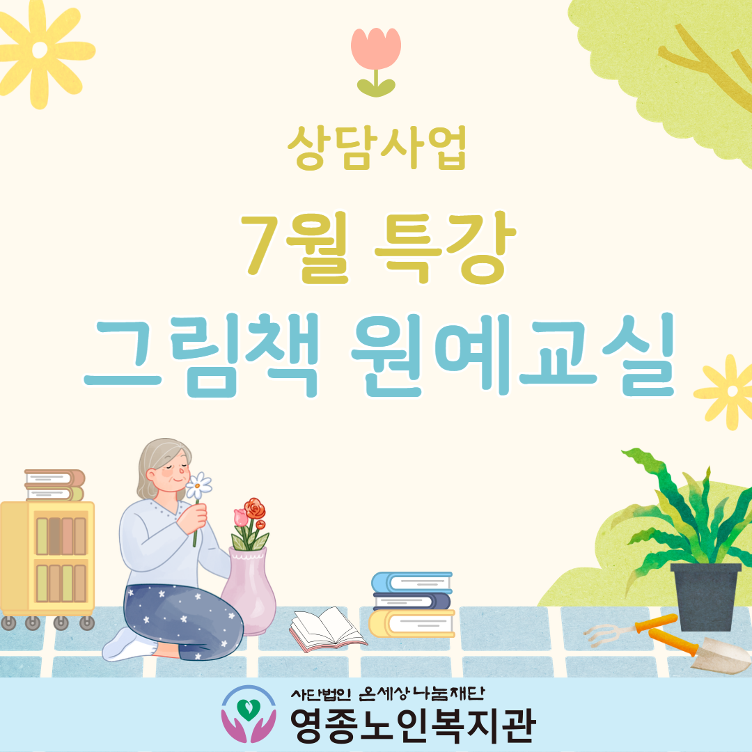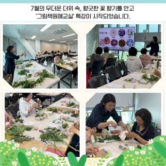 [상담사업] 7월 특강 '그림책원예교실' 진행 페이지 정보 작성자 영종노인복지관 작성일25-08-01 16:48 조회수111 본문 목록 이전글 [노년사회화교육사업] 7월 특강 '도예교실' 진행 25.08.04 다음글 복(伏) 맞이 행사 “백운골 복닭 잔치” 진행 25.07.25