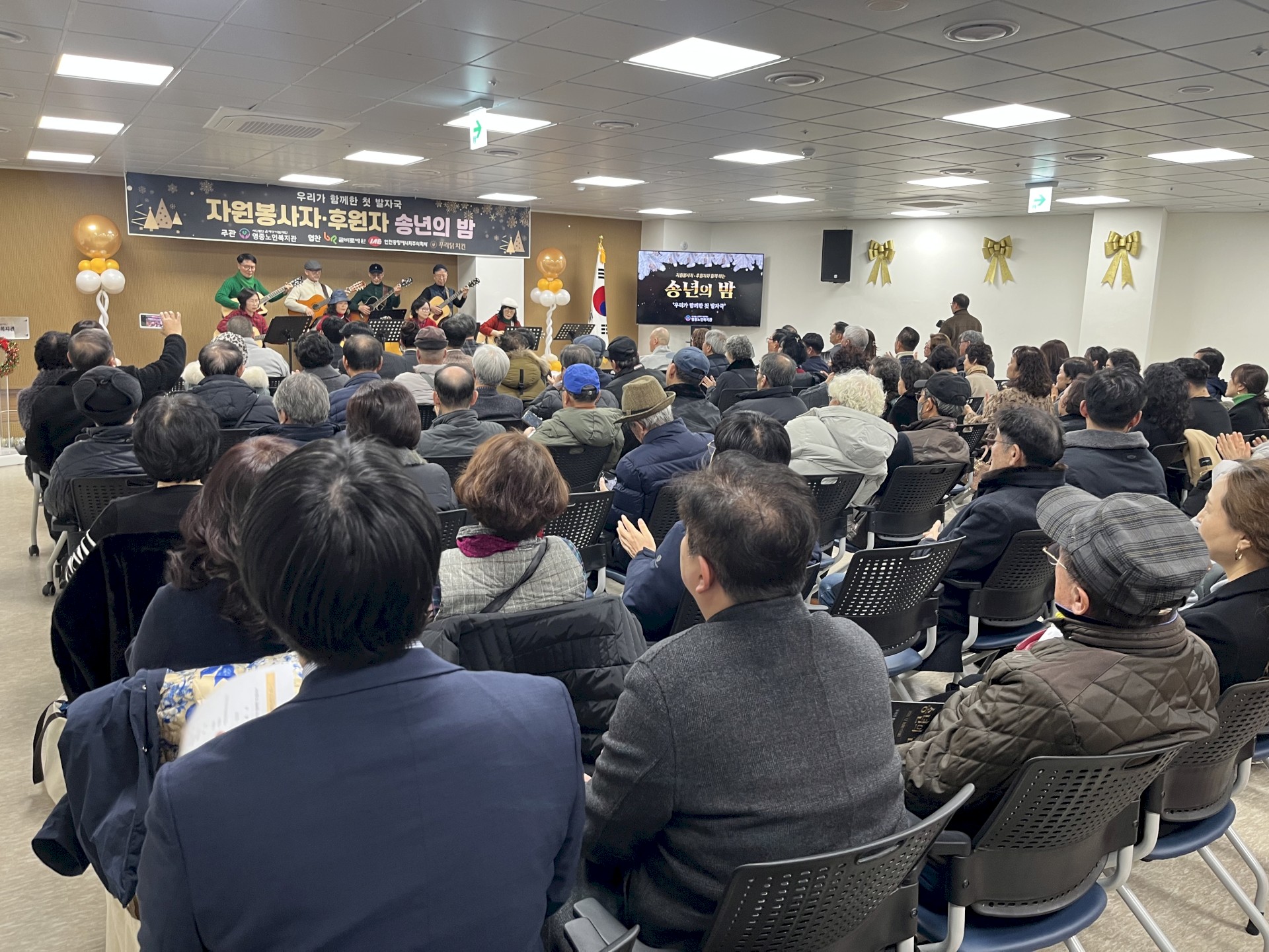 식전공연으로는 영종노인복지관 기타 동아리 ‘스카이드림기타’의 무대가 펼쳐져 분위기를 더욱 따뜻하게 만들었으며,